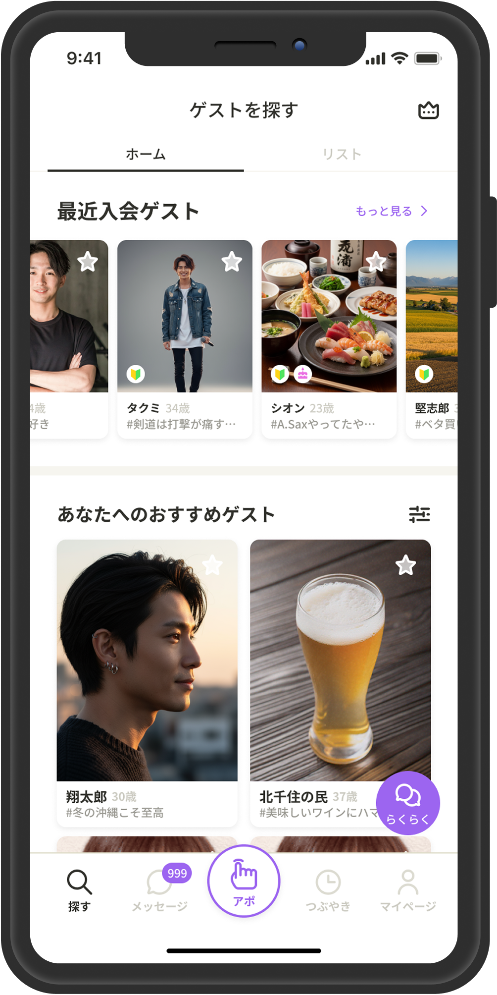 ネネる・サシネでユーザーとマッチング。気軽にその場の時間を楽しんでください!