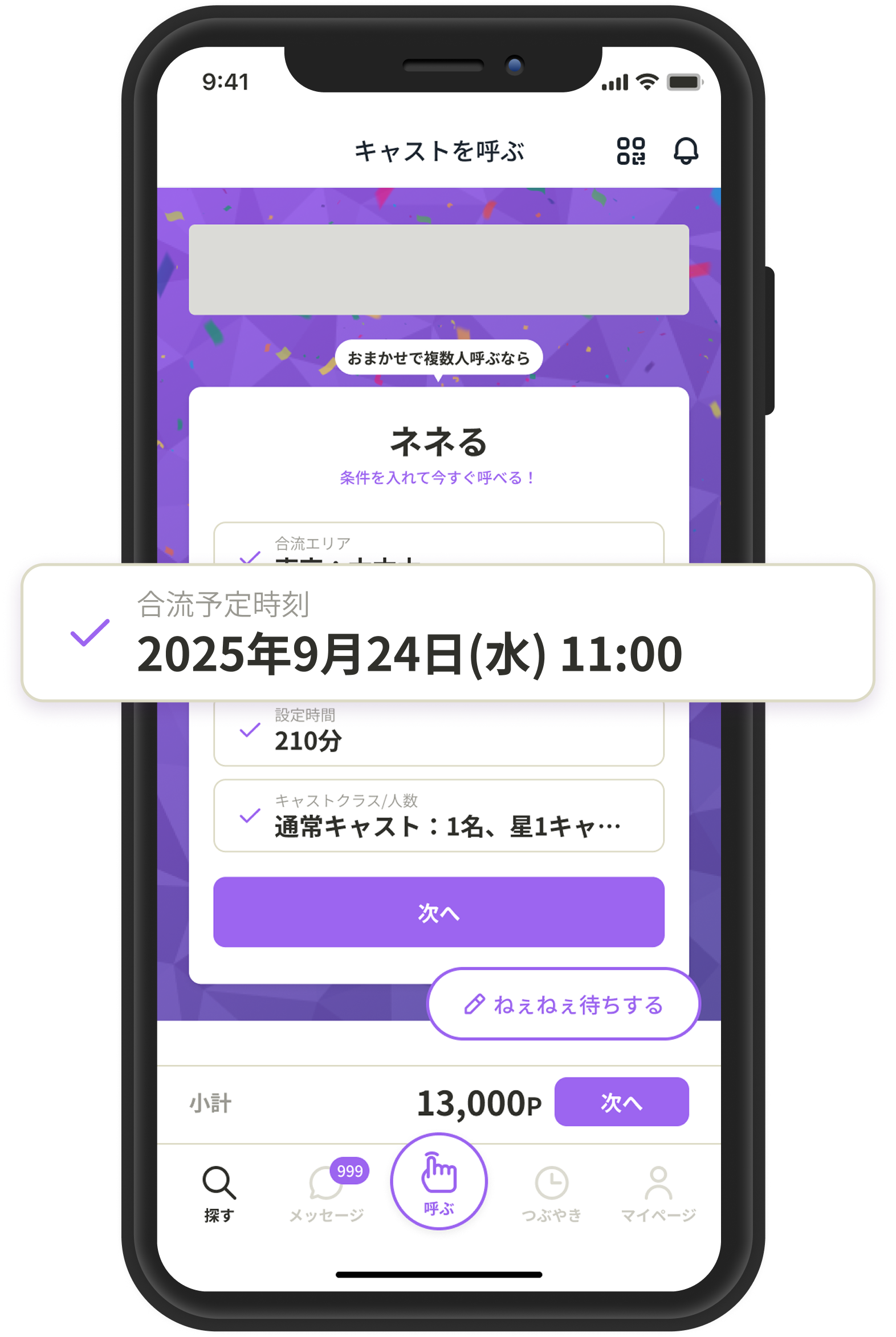 neneruは、初めてでも安心して使えるギャラ飲みアプリです。アプリ上でキャストを選び、日程を調整するだけで、誰でもスムーズにギャラ飲みを体験できます。