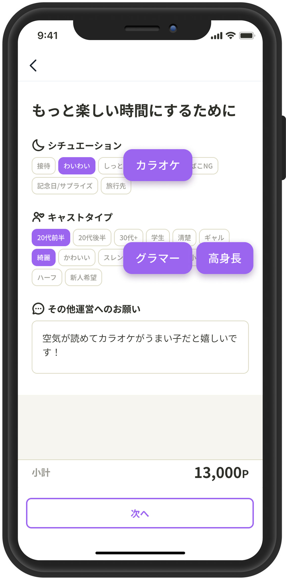 ややこしいルールやステータス制はなく、“気軽に”“安心して”ギャラ飲みを楽しめることを大切にしています。